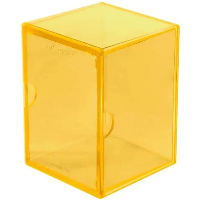 Holds up to 110 Standard gaming sleeved cards. Self-locking lid design with thumb notch for easy access to cards. (Sleeves, cards not included)