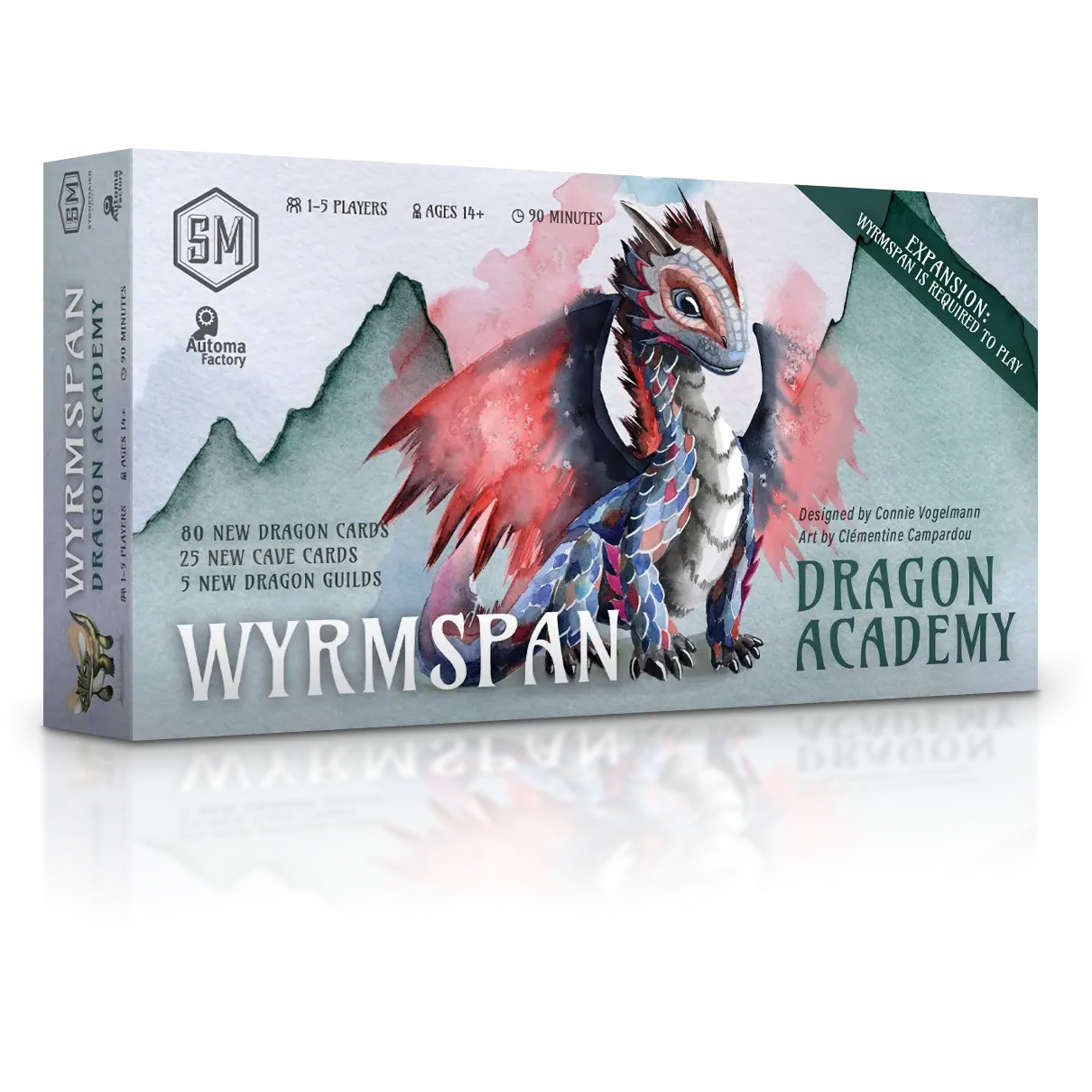 As a budding dracologist, you open an academy for fledgling dragons to achieve their full potential! The expansion to Wyrmspan adds a wide variety of new dragons and caves, objective tiles, dragon guilds, and a new round tracker that presents you with an income choice when you pass for the round. Welcome to Wyrmspan: Dragon Academy!