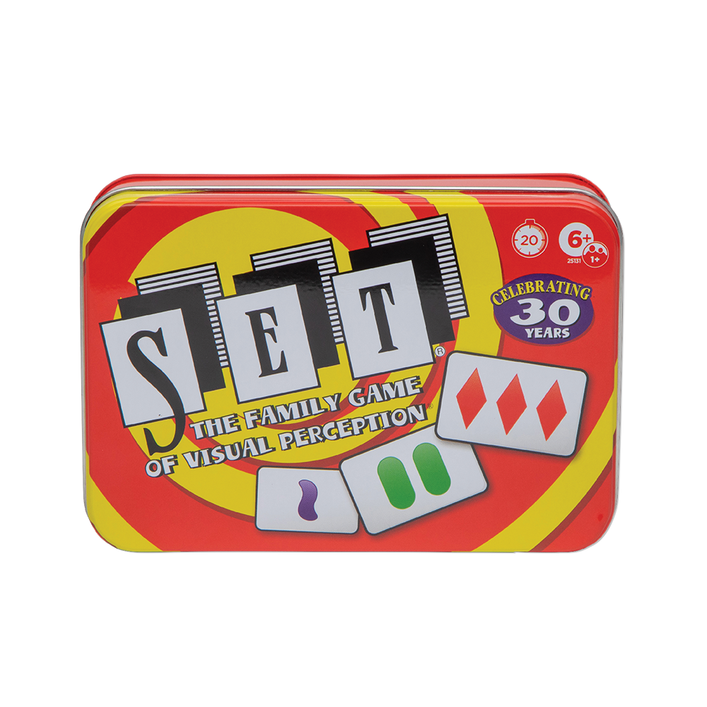 Race to find a set of three among the twelve cards in this family game of visual perception.