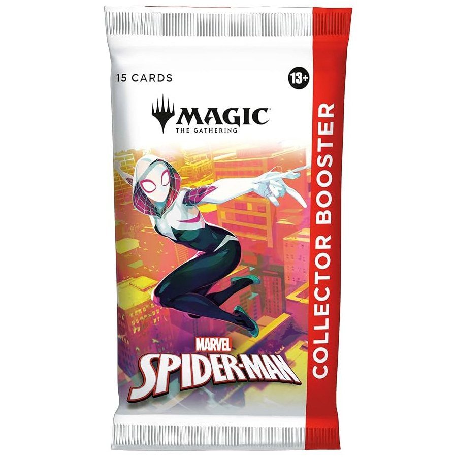 Collector Boosters gather all the coolest cards and foil treatments in one place! Each booster contains Rares and/or Mythics, Traditional Foils, a Borderless basic land, and more. Web-slinging heroes may encounter even more beautiful foils and picture-perfect lands. You could also find the headliner card–the most collectible pull of all!