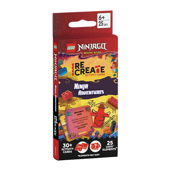 Welcome to a world of endless possibilities! Each card contains a fun, ninja adventure-themed challenge, such as creating a portal gate so Kai can return quickly to the monastery, building a big hat to disguise the ninja from the Forbidden Five or making a fast bike for Nya to ride through the lava wastes. Can you build a miniature of Ninjago City, a turbo-powered cart for Sora or a defense wall for the Monstery of Spinjitzu?