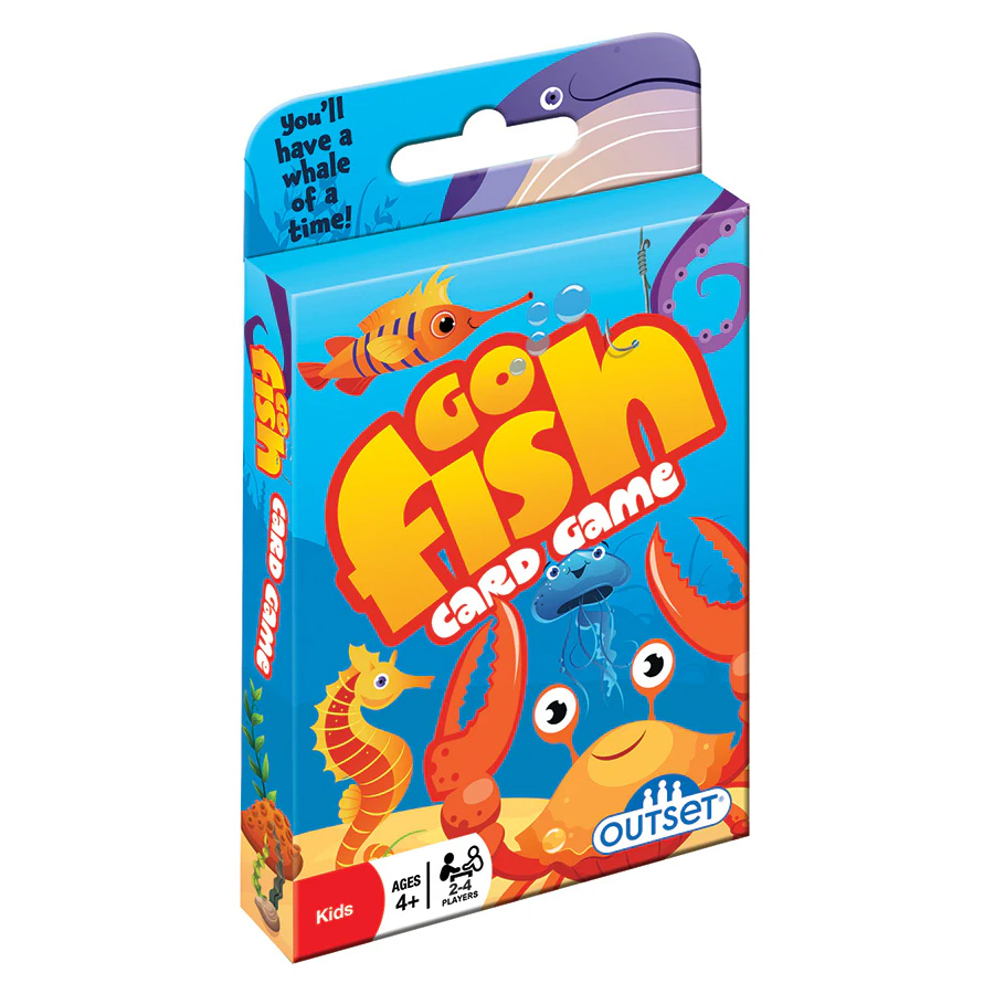 Go Fish – your family will have a whale of a time! Enjoy 36 jiggly jellyfish, crabby crabs, naughty narwhals, whopping whales, and oogling octopuses in this deliciously fishy, fintastically fun game. Who will net the most sets of three? Let's play!